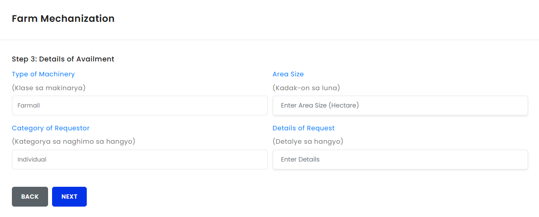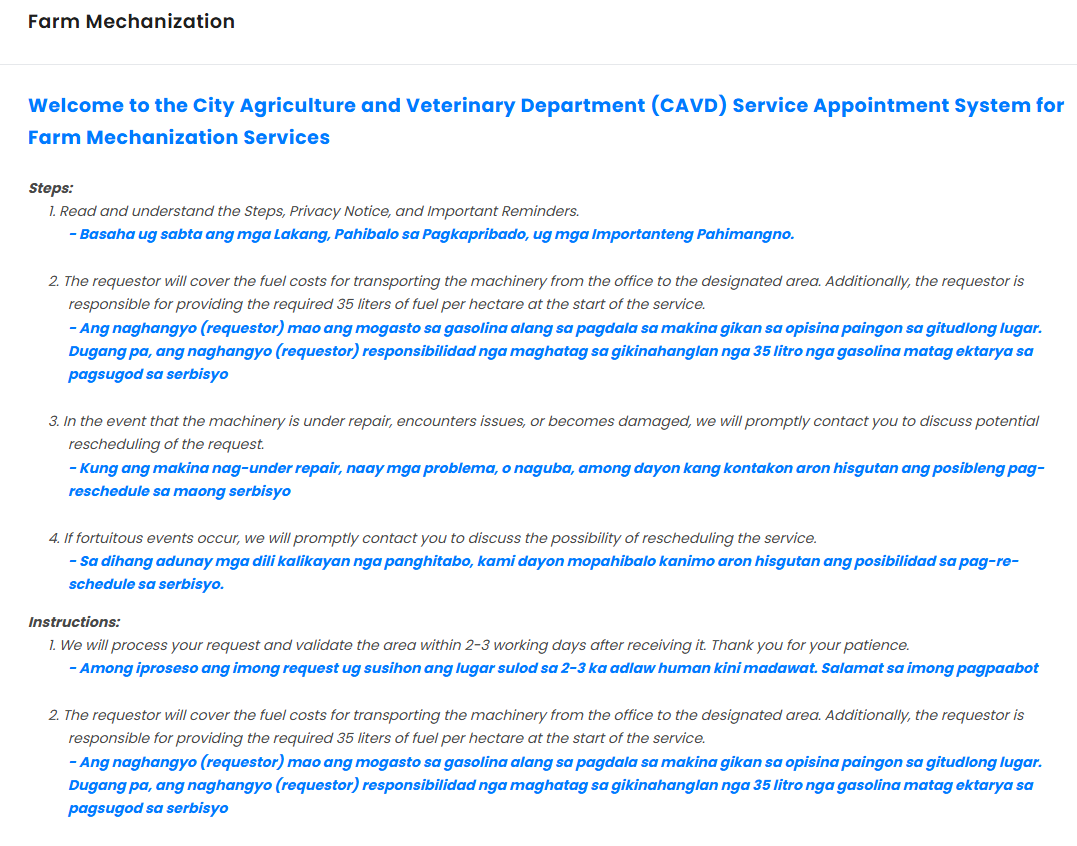 - Isulod ang mga detalye sa serbisyong gi-avail, lakip ang